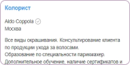 2017-2018 г. - работала в салоне красоты "Фреш" в Перми (парикмахер-универсал)
