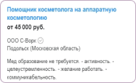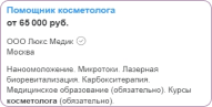 2019 г. - Клиника мировой косметологии, косметолог; курорт Усть-Качка, врач по общей гигиене